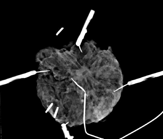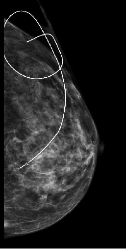 Cliché de mammographie avec repérage de la Tumeur et radiopièce correspondante