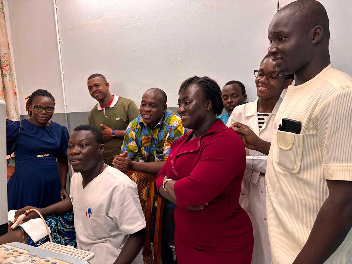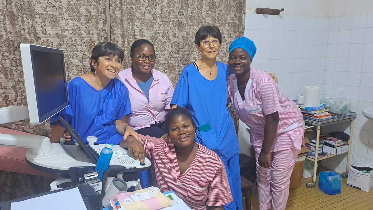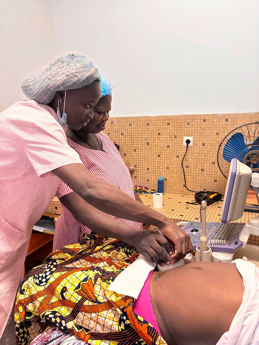 182 échographies réalisées ; formation de sages-femmes et médecins n’ayant parfois jamais pratiqué l’échographie auparavant. À l’issue de la mission, 5 sages-femmes sur 7 sont devenues autonomes pour les échographies de dépistage.