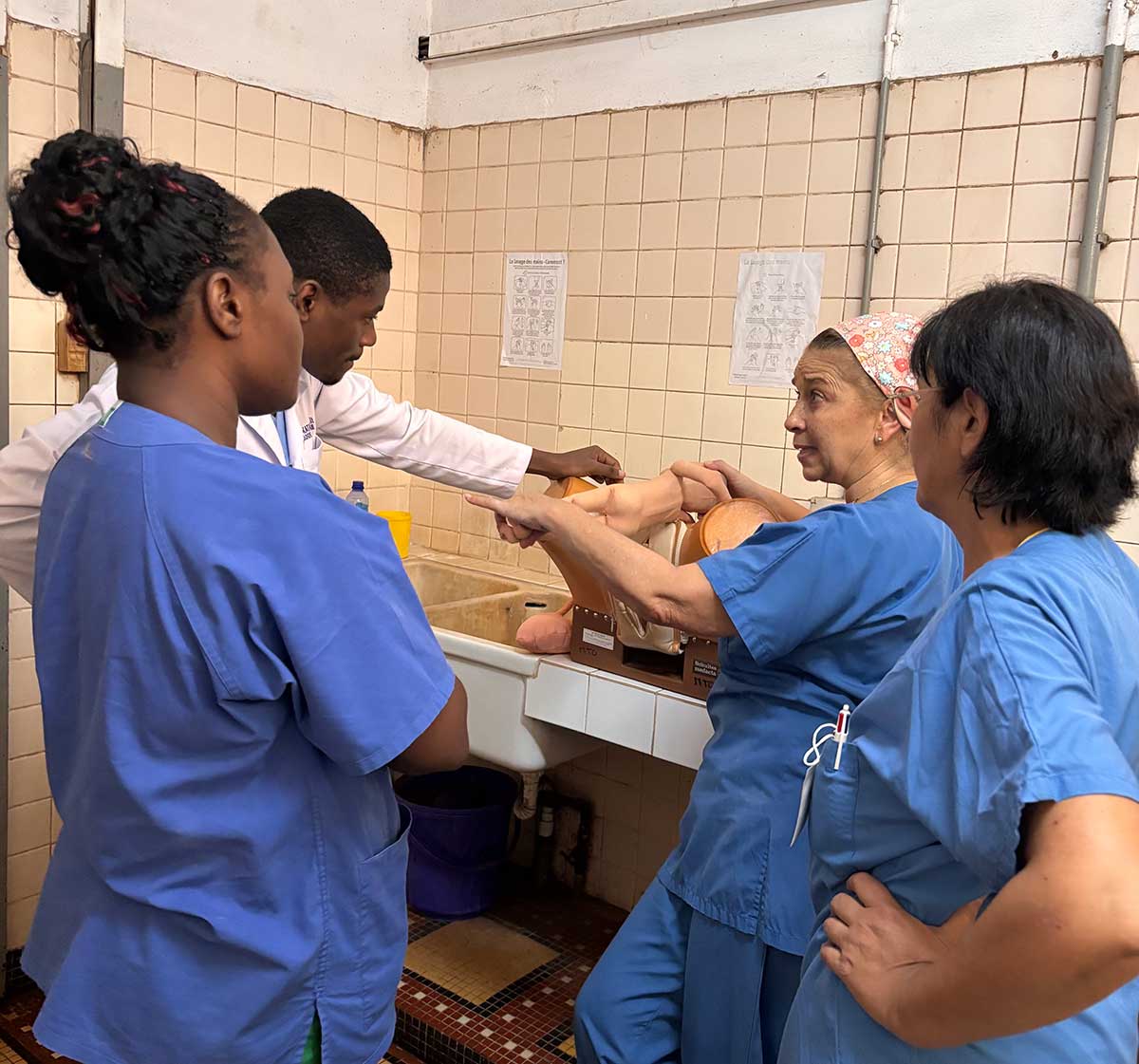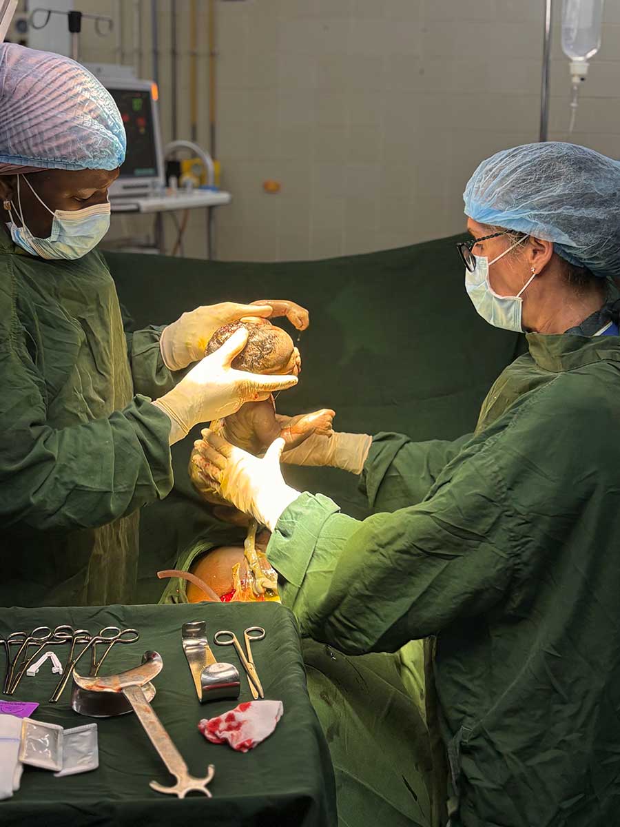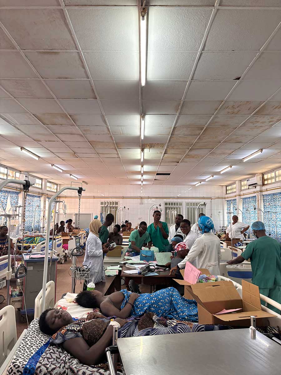 L’équipe française a travaillé en immersion en salle de naissance et en service de grossesses à risques (88 lits) aux côtés des sages-femmes et internes togolais. La présence d’une gynécologue-obstétricienne en salle a permis de renforcer les échanges médicaux et la qualité de la prise en charge.