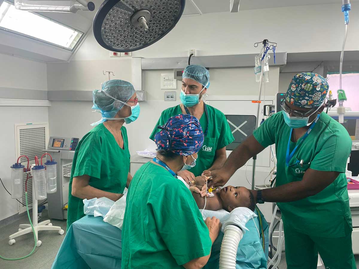 « A présent il n’y a plus suffisamment de personnel sur place. Je pars donc à chaque fois avec une anesthésiste et une infirmière de bloc de Timone Enfants. La chirurgie des fentes n’est pas très exigeante en termes de moyens. Il suffit de disposer de quelques instruments. Le plus important est d’avoir un anesthésiste pédiatrique très aguerri, car il arrive par exemple que nous devions opérer des enfants dénutris ou drépanocytaires. »