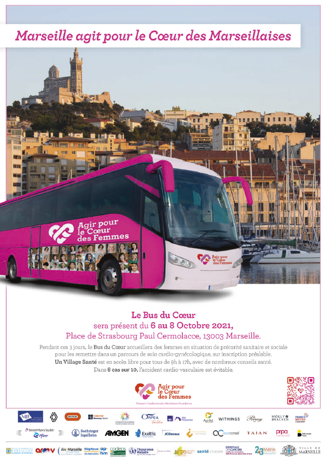 Du mercredi 6 au vendredi 8 octobre 2021, le Bus du Cœur sera présent à Marseille pour accueillir des femmes en situation de précarité sanitaire et sociale pour les remettre dans un parcours de soins cardio-gynécologique.