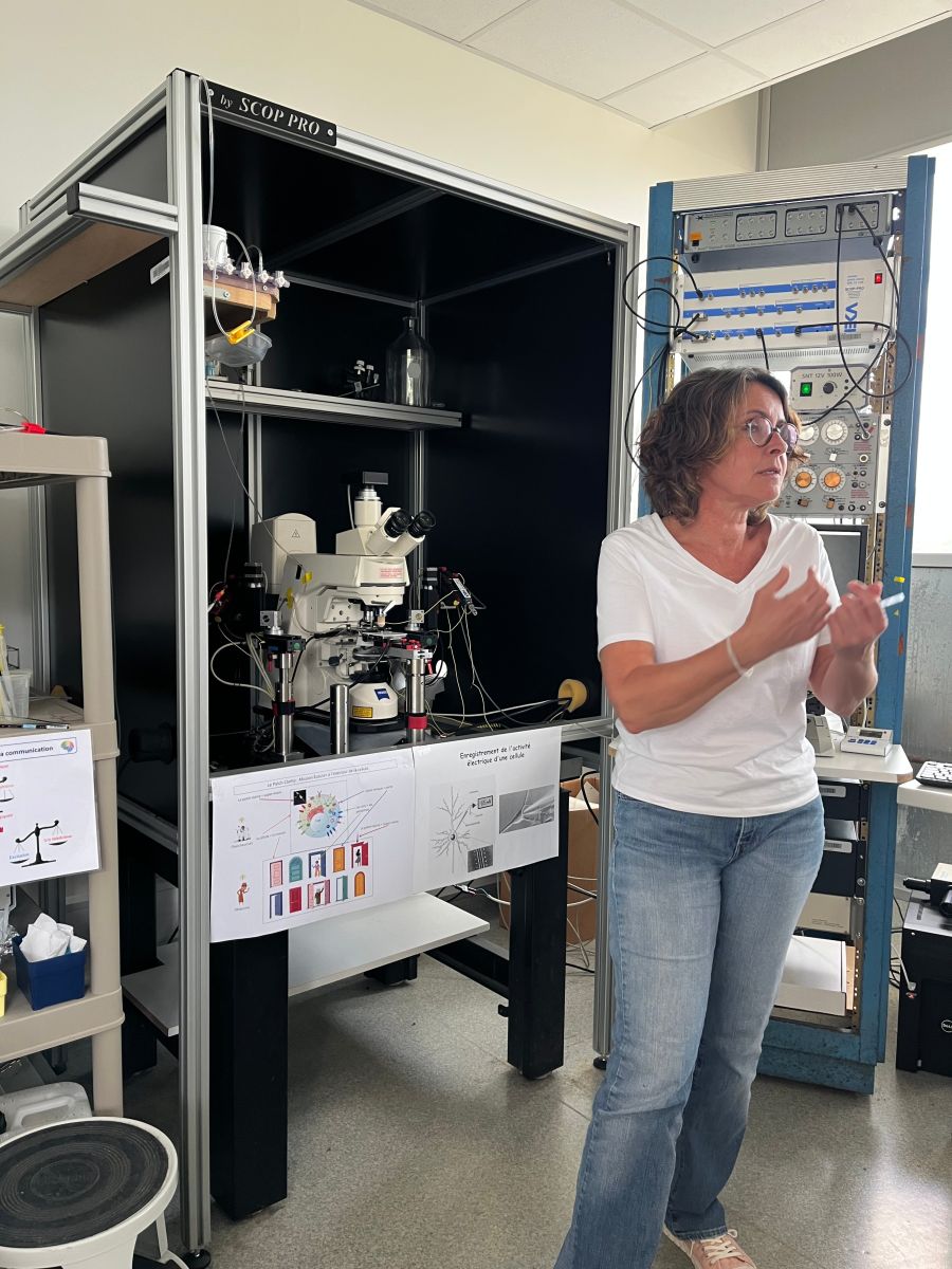 Les stagiaires ont pu visiter les plateformes de microscopie et d'électrophysiologie accompagnés de Hélène Becq et François Michel